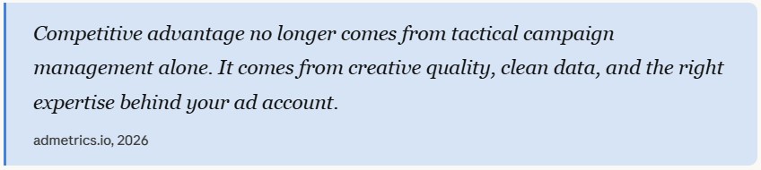 In Q4 2025, Meta began testing an AI business assistant with advertisers that remembers campaign goals and offers personalised performance recommendations. This will expand significantly throughout 2026. The marketer’s role is shifting from button-tweaker to creative strategist and brand steward.